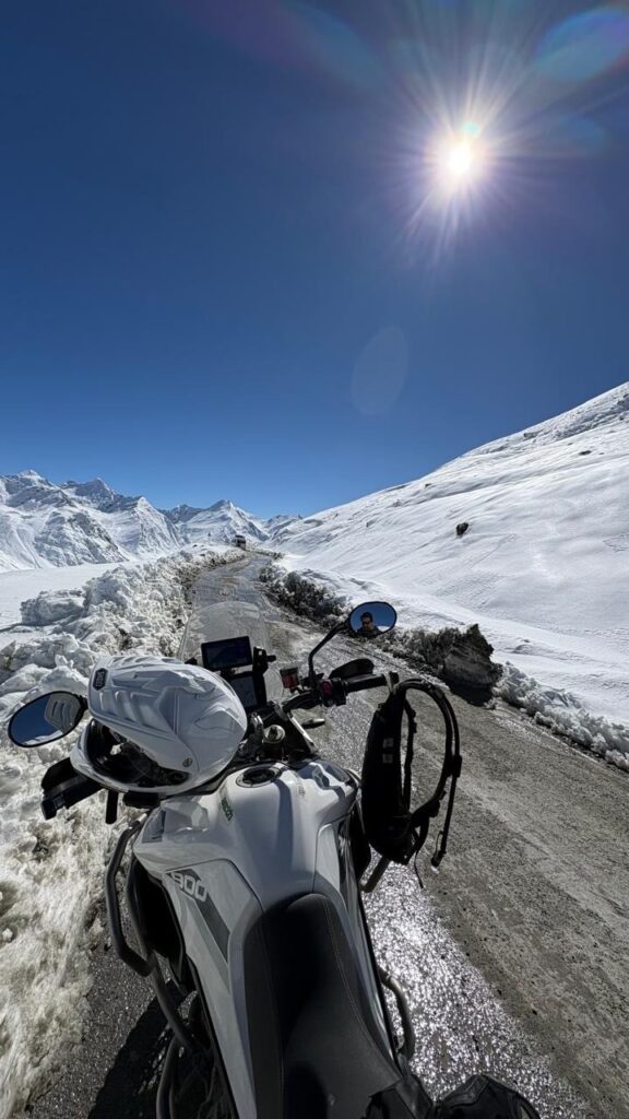 My motorcycle was dispatched by truck from Mumbai to Chandigarh. My official ride started off with an underwhelming run from Chandigarh to Manali. Riding alongside were a few newly minted friends from Mumbai and Goa. We checked into the hotel at Manali a day prior to the ride, ostensibly to acclimatize. The night before we started the formal ride, I experienced firsthand the challenges of High-Altitude. My Blood Pressure readings rocketed to numbers that I won’t want to even mention here. In hindsight seeing the BP readings had my head spinning more than the actual effect of BP. Frivolity aside, it did cross my mind if things didn’t improve it would make sense packing it in and going back to Mumbai. However, the silver lining was my Blood oxygen levels that were quite acceptable for the elevation. After reluctantly doing some deep breathing exercises, the next day the readings came down considerably though still much higher than everyone else on the trip which I promptly attributed to me being one of the oldest on the trip. Clearly lack of oxygen to the brain makes you believe things.