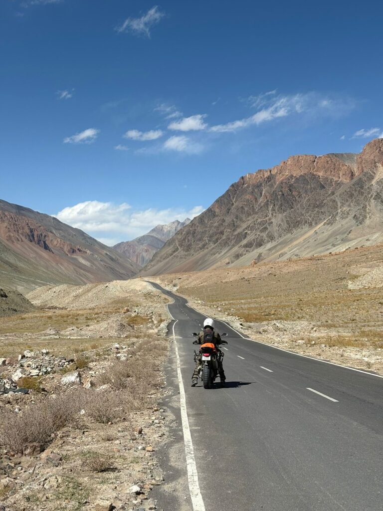 The tarmac sections were outstanding but I wasn’t prepared for what came after that. The best came towards the last few days of the ride specially on the day when we set across the deserts of Hanle towards Umlingla situated at 19000 feet. A mix of loose gravel and sand greeted us, and this was the sight as far as the eye could see. Following in the wake of another motorcycle was not advisable as visibility was hampered by rising dust and hence one just made coursed a path for oneself. Standing high on the footpegs feeling the tyres spin furiously as they gained traction, all I could think was to gun the engine even more. Transfixed on the road, I did not dare glancing down at the speedometer though I knew I was doing speeds that were in three figures. Looking back today, I have never felt more alive than what I felt on that day. Calm and surprisingly sure of what I was doing, I left quite a few of the seasoned riders behind. It wasn’t as if I set myself up to racing, however I was oblivious to everything around me as I effortlessly sailed over bumps, gravel and small rocks, both wheels in the air landing expertly, knees braced for the impact that would invariably transmit upwards from the footpegs. Many of my fellow riders had their rides captured and immortalized on camera. Though the narcissistic me still regrets that there was no one who captured the true essence of my riding, I made peace that the experience of doing all of what I mentioned would stay in my mind rather than an Instagram worthy picture or reel. I never heard the deafening winds, the engine noise of the triple and crunching of wheels on the gravel. Instead, all I remember was the rhythmic exhaling of my breath, my eyes scouring the gravel, vibrations from the handlebar and all this a near out of body experience. If there has ever been a zen state of mind that I could ever claim I have experienced, then this would be it.